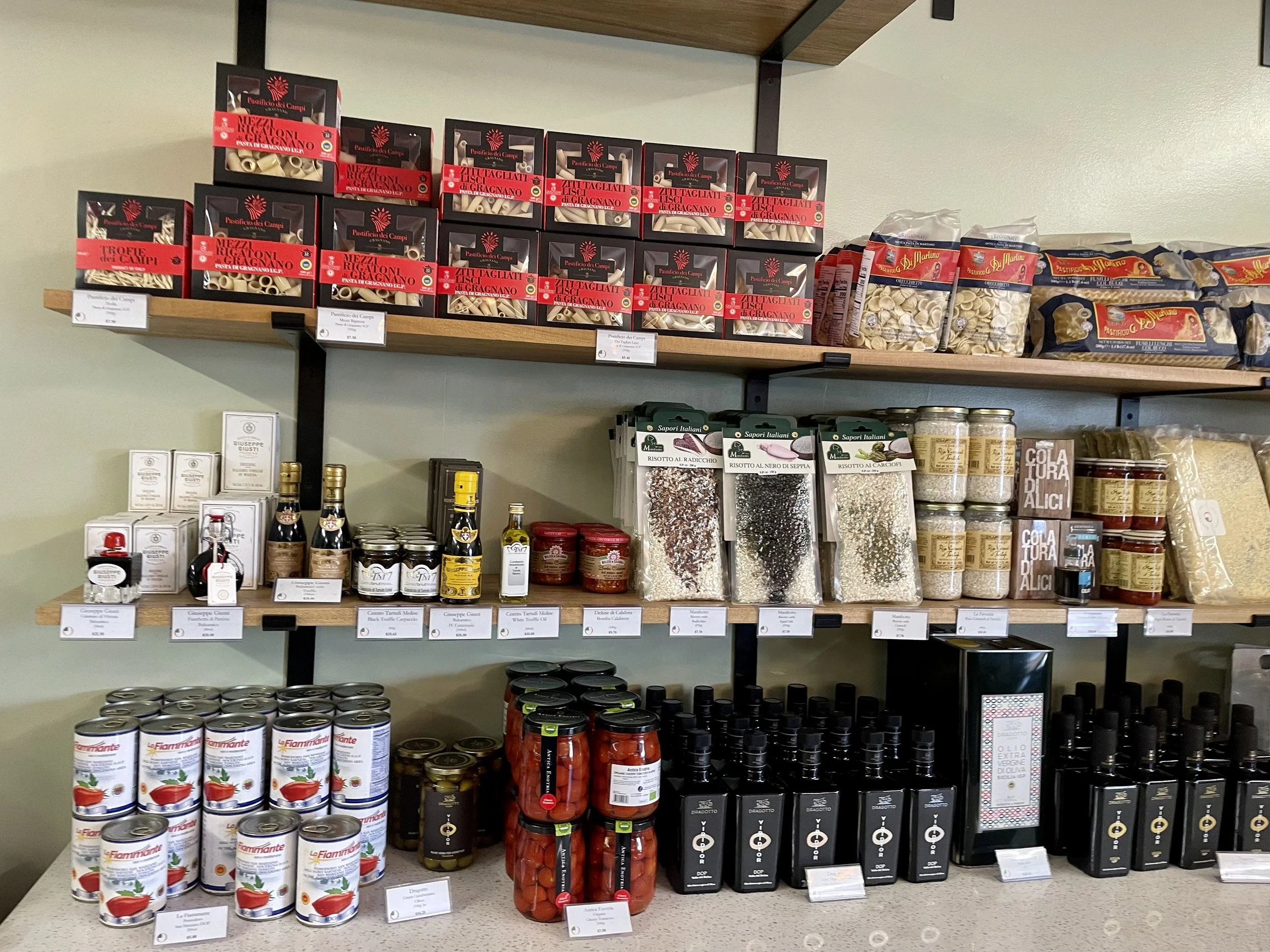Some of the authentic Italian grocery items available at Bocconcino Cafe